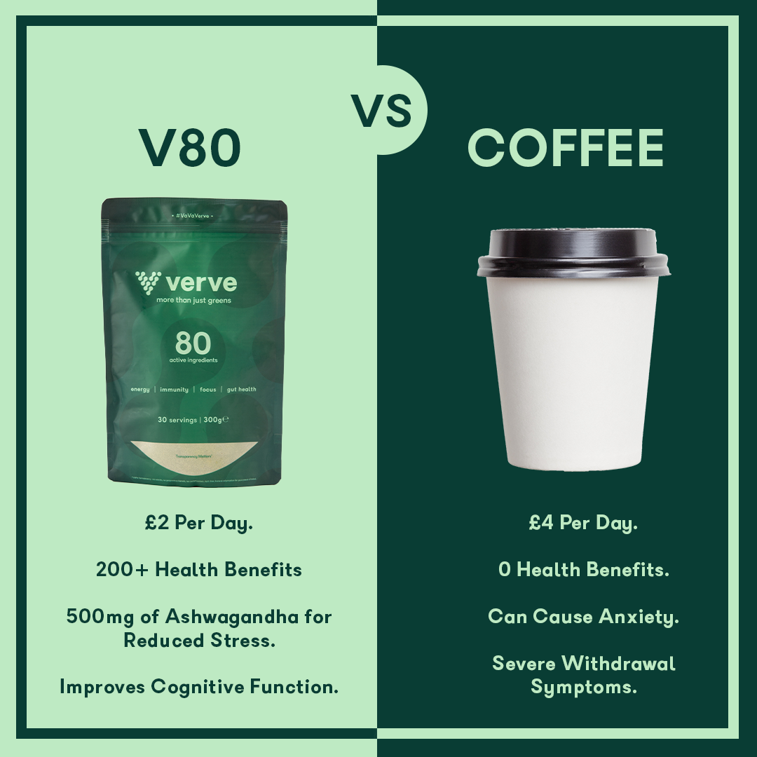 Zum Glück sind die Zeiten vorbei, in denen grüne Getränke mit einem Geschmack gleichgesetzt wurden, der am besten als „gewöhnungsbedürftig“ beschrieben werden konnte. Heute werden viele dieser Getränke, darunter auch Verve V80, mit besonderem Augenmerk auf den Geschmack entwickelt und mit echten Früchten für ein angenehmes Aroma angereichert. Das macht sie zu einer angenehmen Alternative zum Kaffee – ganz ohne kalorienreiche Sahne und Zucker, die Ihren gesunden Kaffee in ein dekadentes Dessert verwandeln können.