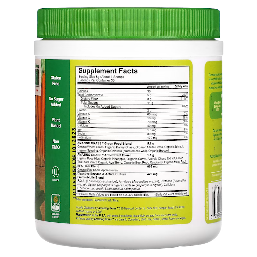However, given that the suggested amount of fibre is 30g per day, a 668mg blend isn’t going to provide a significant contribution to your fiber goals. This is something we thought is worth mentioning, but it’s also important to note that ingredients of other blends inside of Amazing Greens Grass contain Fiber, bringing the total fiber per serving to 3g (much better!).