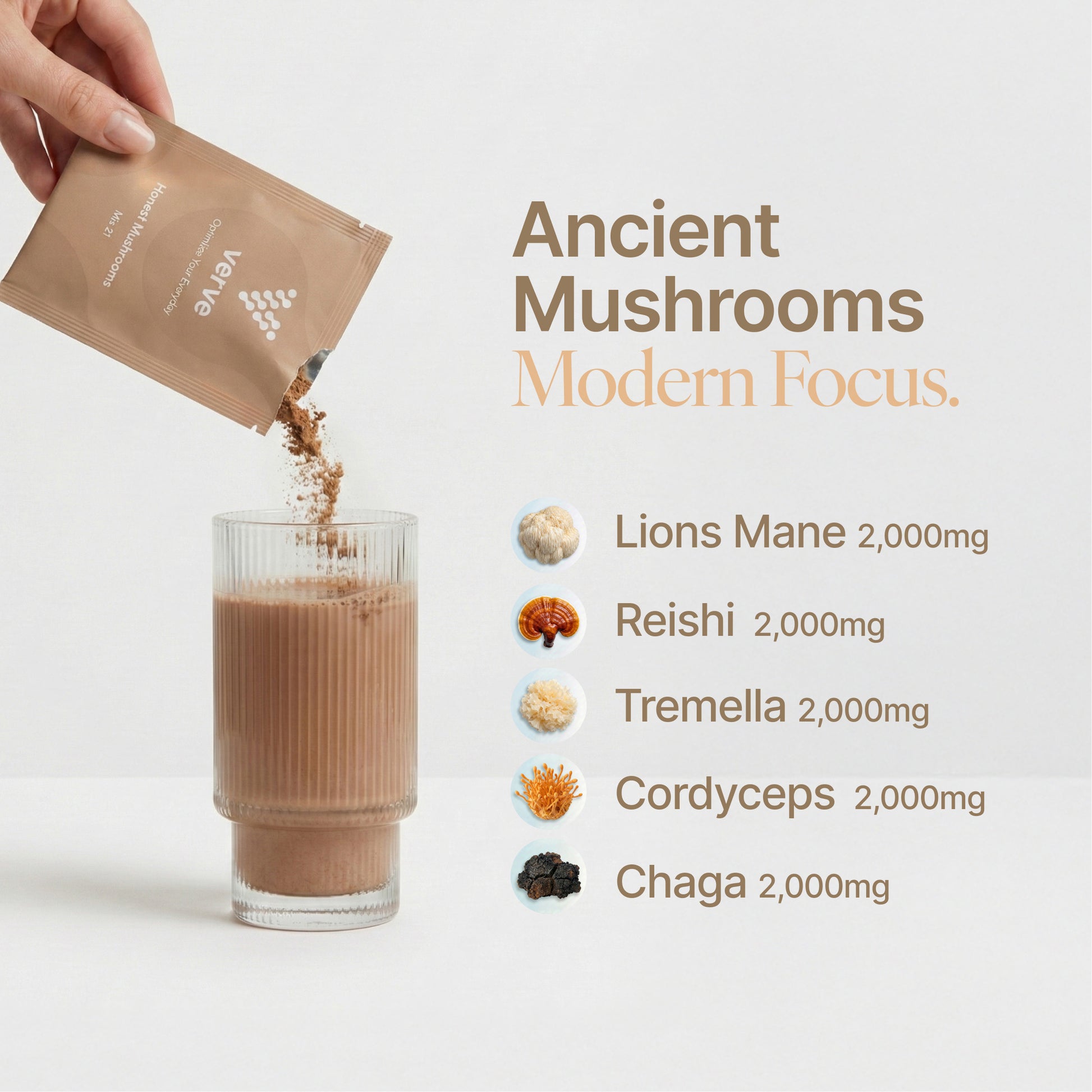 Optimice su día a día con Honest Mushrooms de Verve: una mezcla transparente y de primera calidad de hongos milagrosos como melena de león, reishi, cordyceps y chaga para mejorar la concentración, la energía y la inmunidad.
