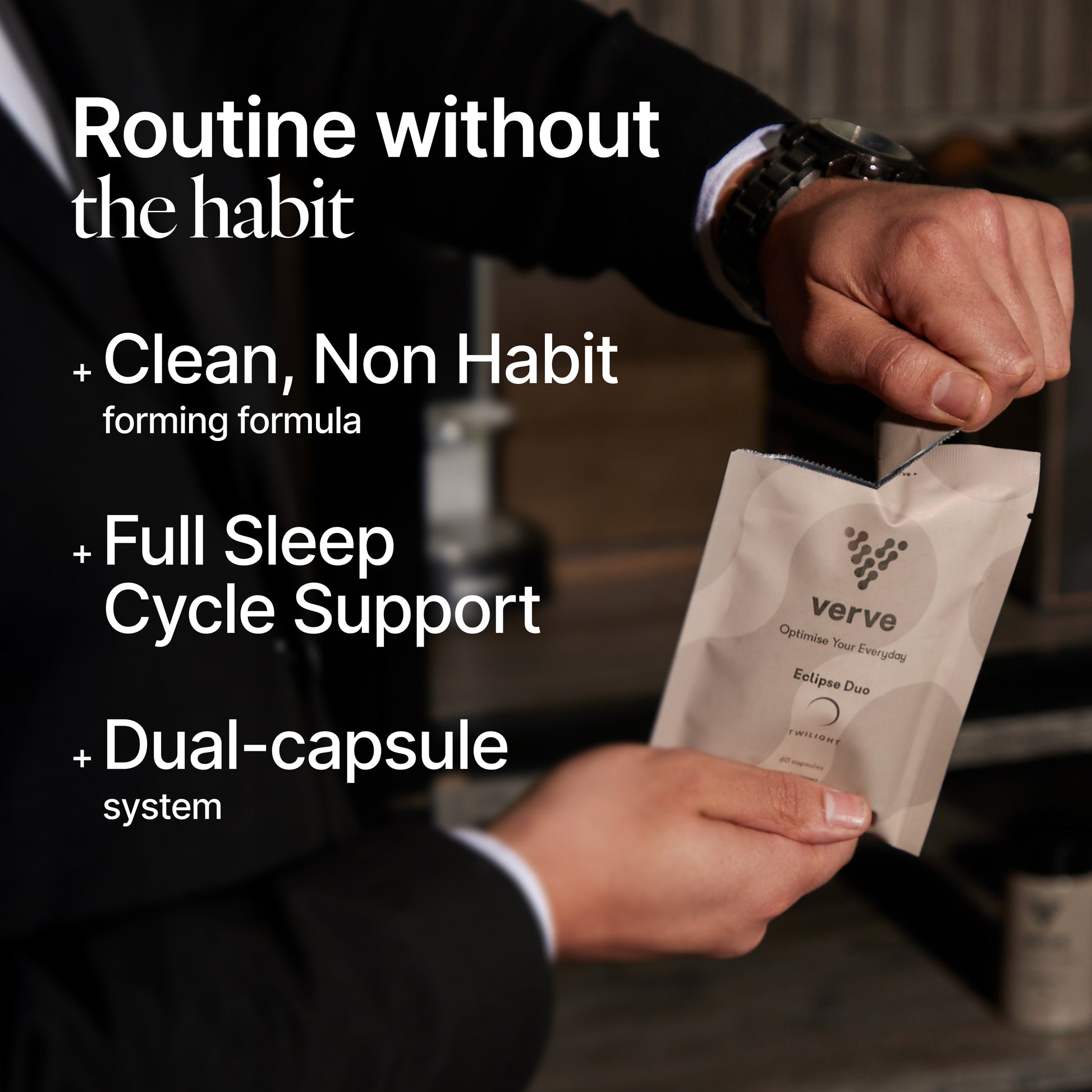 Un complemento para el sueño de primera calidad, totalmente natural y transparente con una exclusiva tecnología de doble cápsula diseñada para ofrecer un sueño reparador e ininterrumpido todas las noches. Optimizar su día a día comienza con una buena noche de sueño.