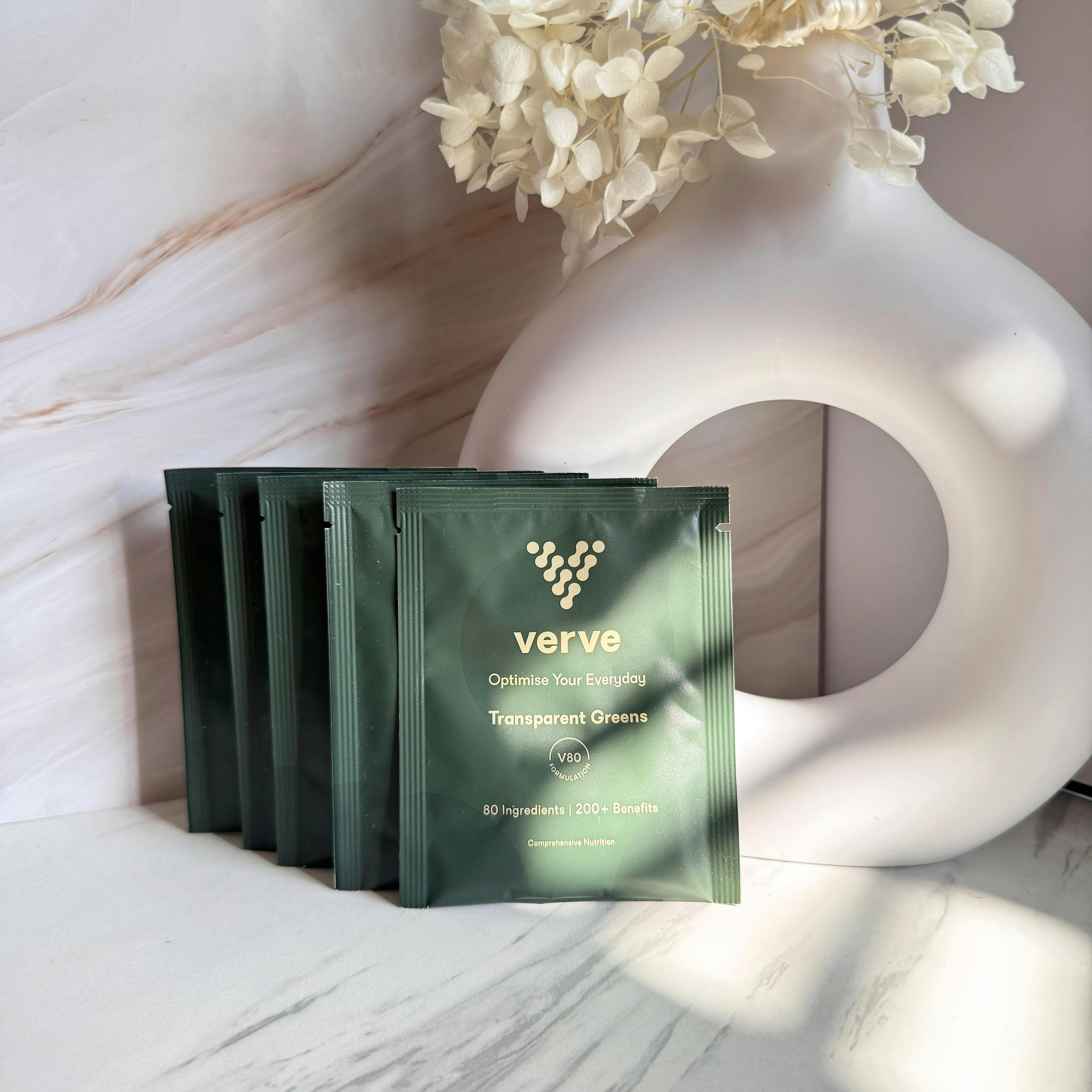 My morning ritual, the transparency of the ingredients was the big win for me, knowing how much of each nutrient and vitamin is key to understanding if you body is getting adequate amounts of the good stuff. Been taking V80 for over 2 years and cannot see a future without it. PS the probiotics for gut health, was the deal sealer. Without them all the other ingredients are pointless, a fact that most other brands of blends ignore! Bravo Verve!
