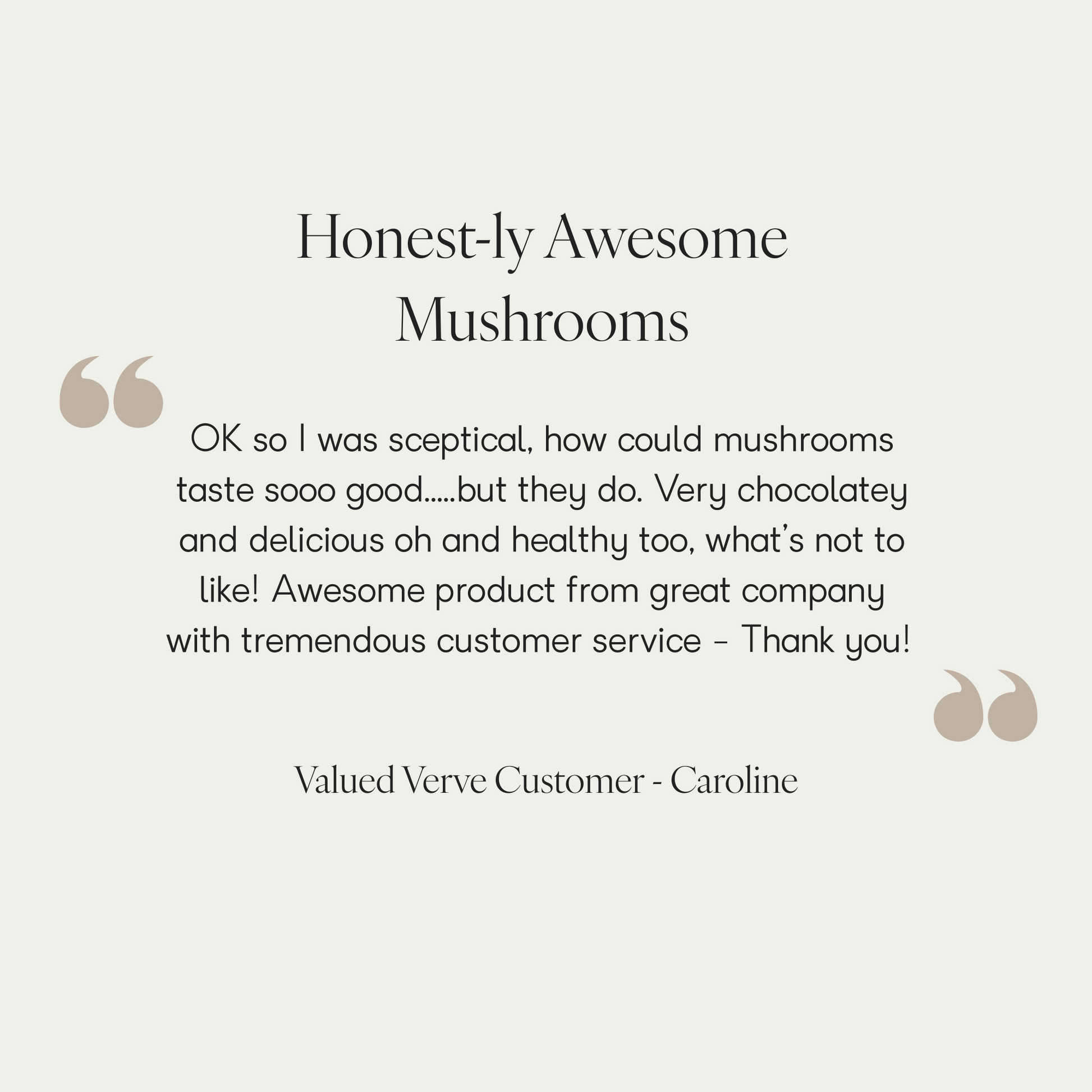 Optimise your everyday with Verve's Honest Mushrooms: a transparent, best-in-class blend of miracle mushrooms from Lion's Mane, Reishi, Cordyceps, and Chaga for enhanced focus, energy, and immunity.